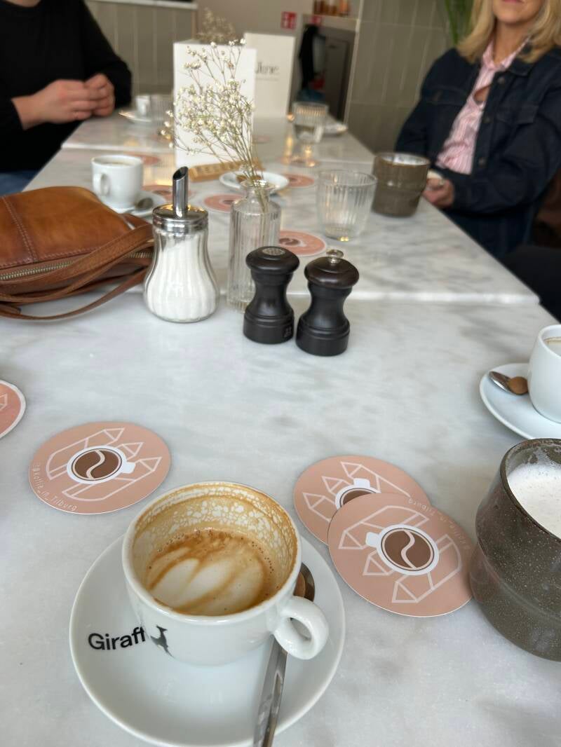 Aangezien ik mijn Instagram account anoniem beheer ken jij mijn gezicht (nog) niet. Op de tafel waar ik aan zit liggen stickers met het @koffie_in_tilburg logo, dat is herkenbaar genoeg.